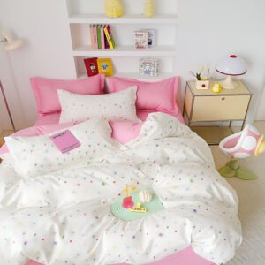 Спално бельо „Цветни точки“ – 100 % ПАМУК от 6 части за спалня – С ЛАСТИК