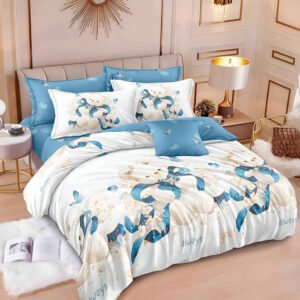Спално бельо „Мече с панделка“ – 100 % ПАМУК от 6 части за спалня – С ЛАСТИК