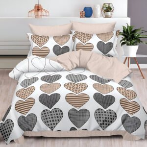 Спално бельо „Бежови сърца“ – 100 % ПАМУК от 6 части за спалня – С ЛАСТИК